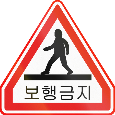 時代遅れの韓国の交通標識 テキストは 横断歩道なしを意味します の写真素材 画像素材 Image